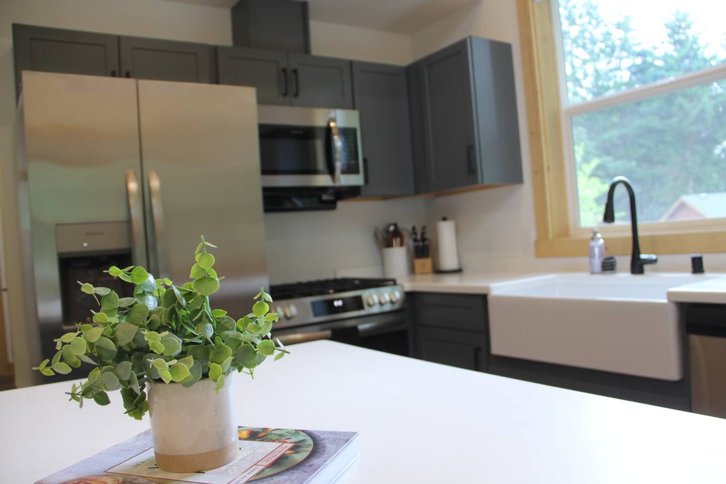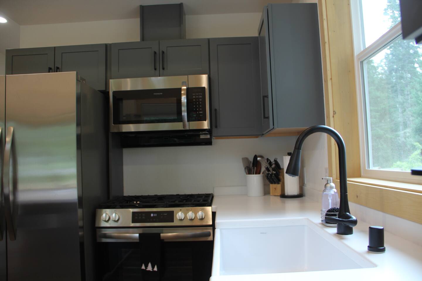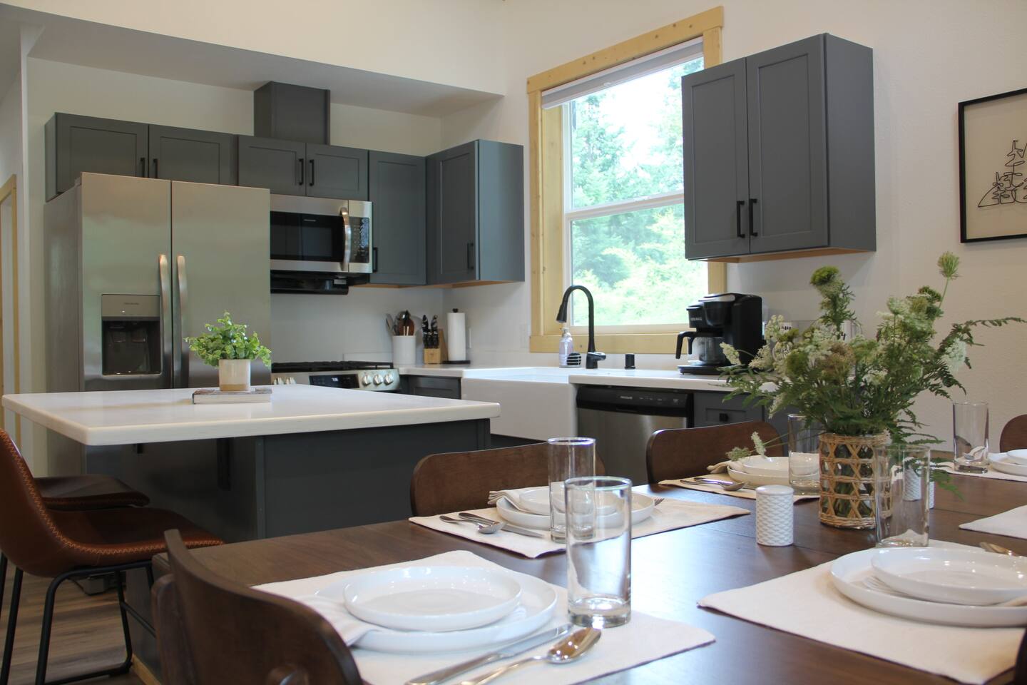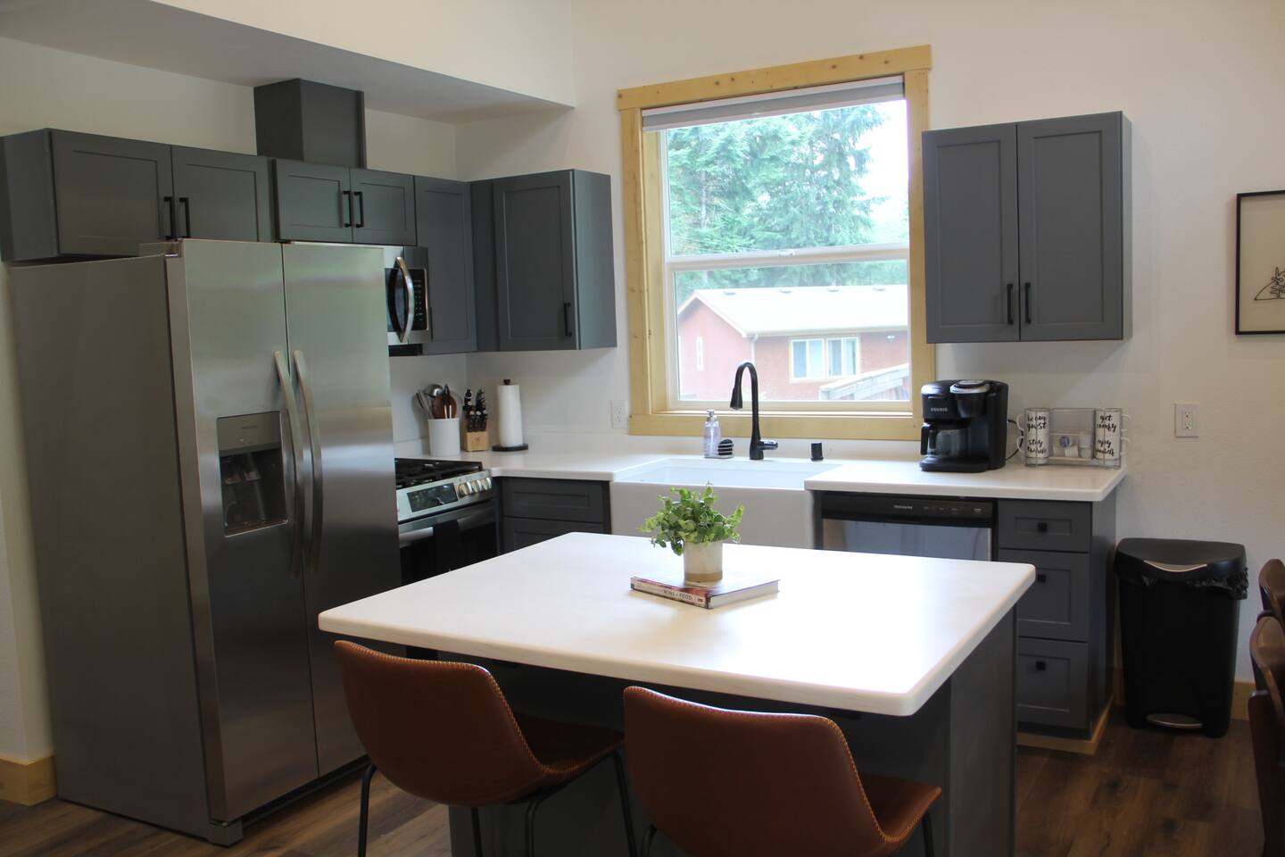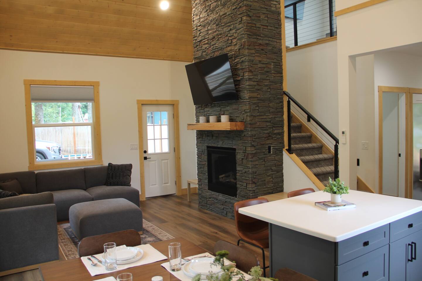 Escape to this elegant, modern cabin just 5 miles from Mt Rainier National Park where comfort and tranquility meet. Relax outdoors year-round with a covered hot tub, cozy fire pit, propane BBQ grill and a covered patio warmed by an electric heater—perfect for morning coffee or evening stargazing. It offers a fully equipped kitchen, 2 bedrooms, 2 bathrooms, sleeper sofa, natural light-filled interior, washer/dryer and gas fireplace—ideal for a peaceful mountain getaway and year-round adventures.